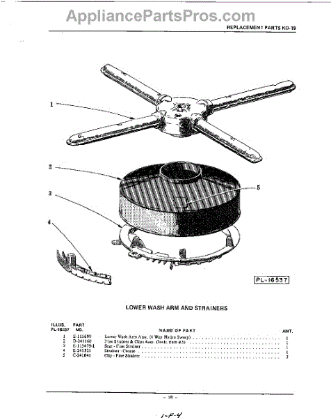 Parts for Kitchenaid KDS39: 18 - Lower Wash Arm And Strainers Parts