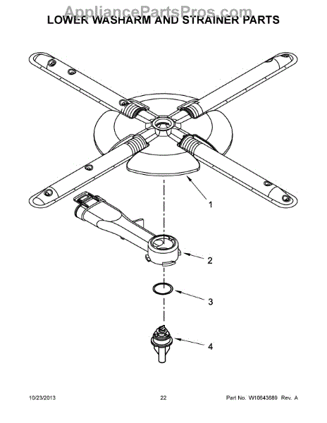 The Lower Spray Arm is an OEM part for Whirlpool dishwashers. This component is located at the bottom of the dishwasher and is responsible for distributing water to clean the dishes during the wash cycle.