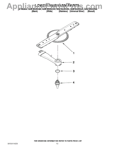 Parts for Amana ADB1600AWQ4: 11 - Lower Washarm Parts
