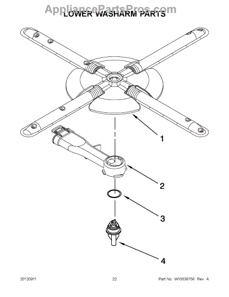 Parts for Kitchenaid KUDS35FBWH0: 11 - Lower Washarm Parts