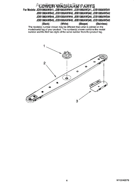 Lower wash arm redirects pressurized water across the dishwasher's lower rack to rinse and remove food and residue, restoring intended wash coverage and improving cleaning performance. What it does: