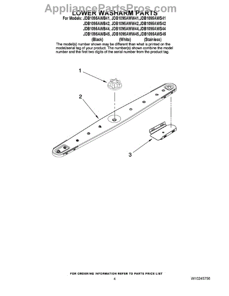 What's included: One lower wash arm. Install notes: