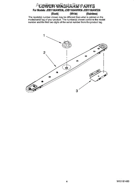 Parts for Maytag JDB1100AWB36: 04 - Lower Washarm Parts