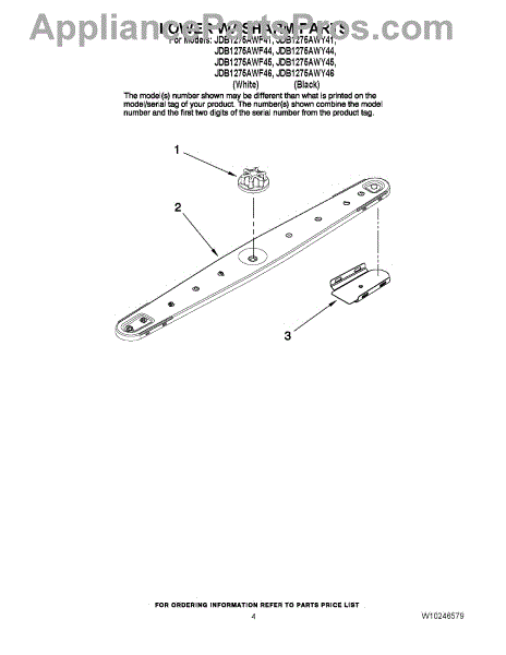 What's included: One lower wash arm. Install notes: