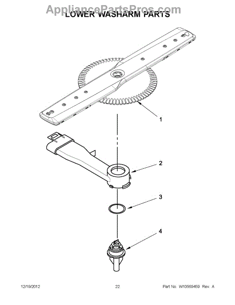 The Lower Spray Arm is an OEM part for Whirlpool dishwashers. This part distributes water throughout the dishwasher during the wash cycle, ensuring that dishes are thoroughly cleaned. It rotates to spray water at high pressure, reaching all areas of the lower rack.