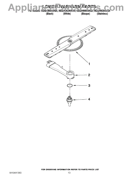Parts for Maytag MDBH969AWW4: 11 - Lower Washarm Parts