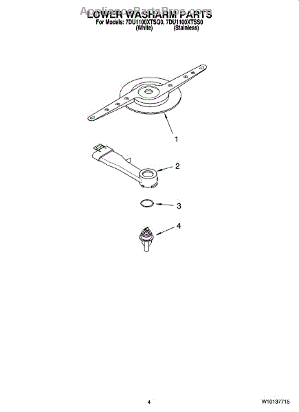 Parts for Whirlpool 7DU1100XTSQ0: 04 - Lower Washarm Parts