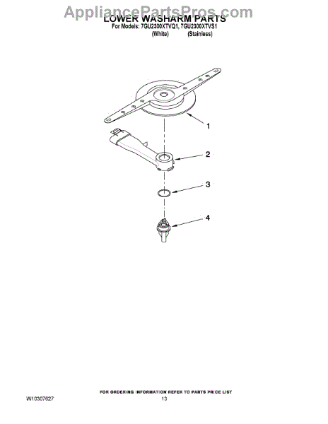 Parts for Whirlpool 7GU2300XTVS1: 11 - Lower Washarm Parts