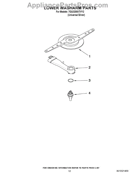 Parts for Whirlpool 7GU3200XTVY2: 10 - Lower Washarm Parts