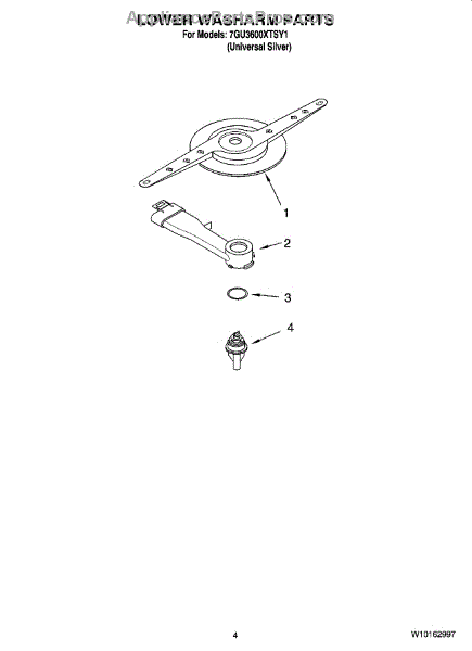 Parts for Whirlpool 7GU3600XTSY1: 04 - Lower Washarm Parts