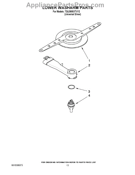 Parts for Whirlpool 7GU3800XTVY2: 11 - Lower Washarm Parts