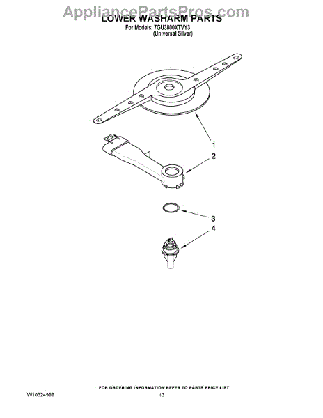Parts for Whirlpool 7GU3800XTVY3: 11 - Lower Washarm Parts