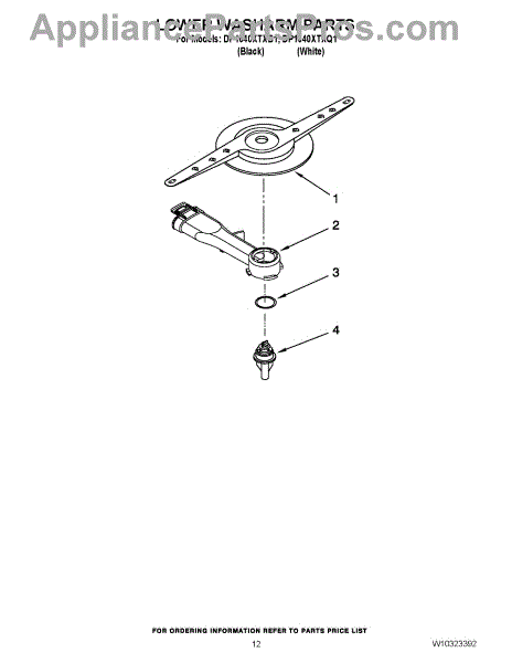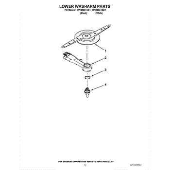 Parts for Whirlpool DP1040XTXQ1: 10 - Lower Washarm Parts