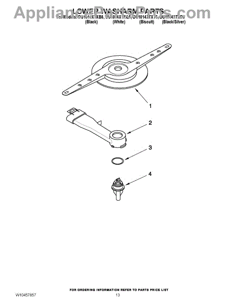 Parts for Whirlpool DU1014XTXQ5: 11 - Lower Washarm Parts