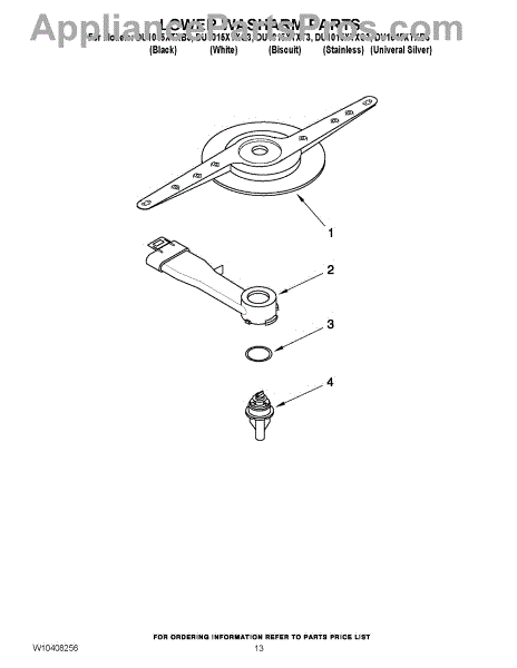 Parts for Whirlpool DU1015XTXD3: 11 - Lower Washarm Parts