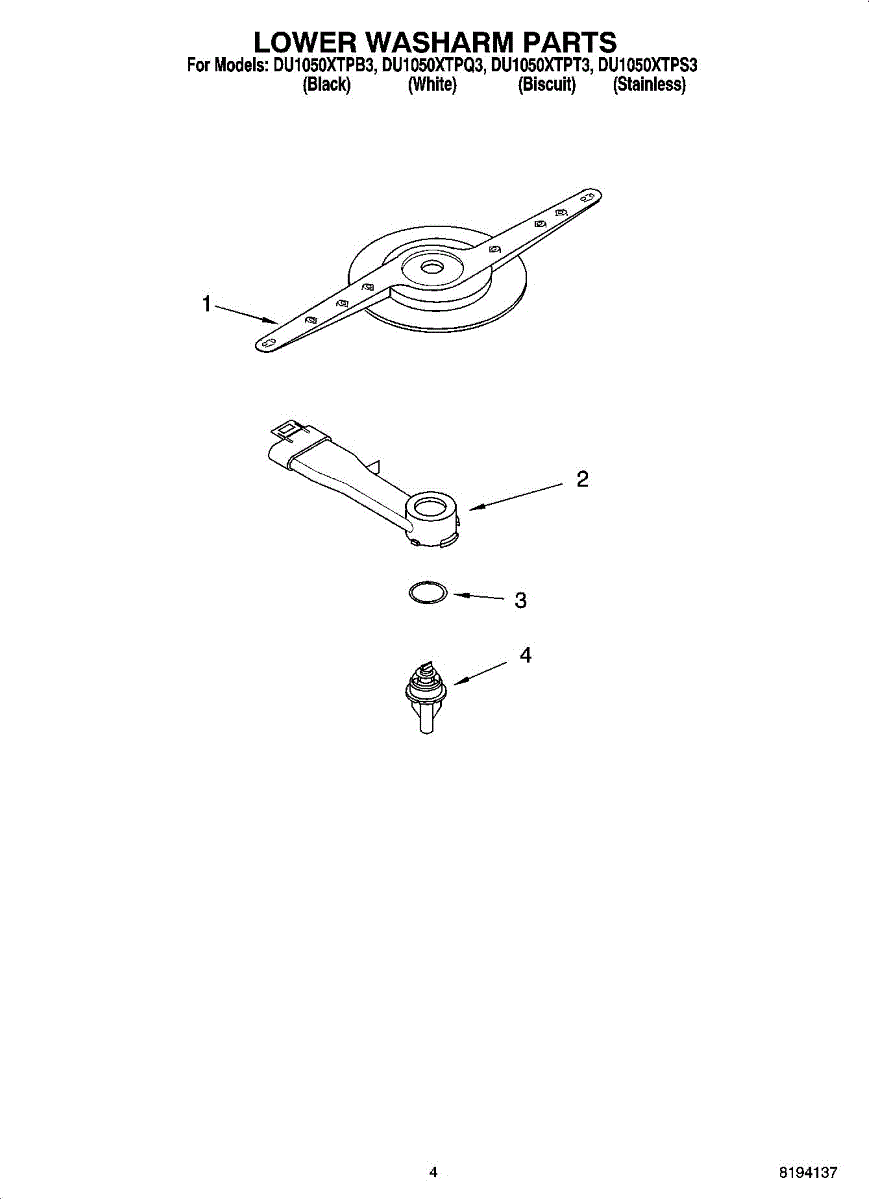 Parts for Whirlpool DU1050XTPB3: 04 - Lower Washarm Parts