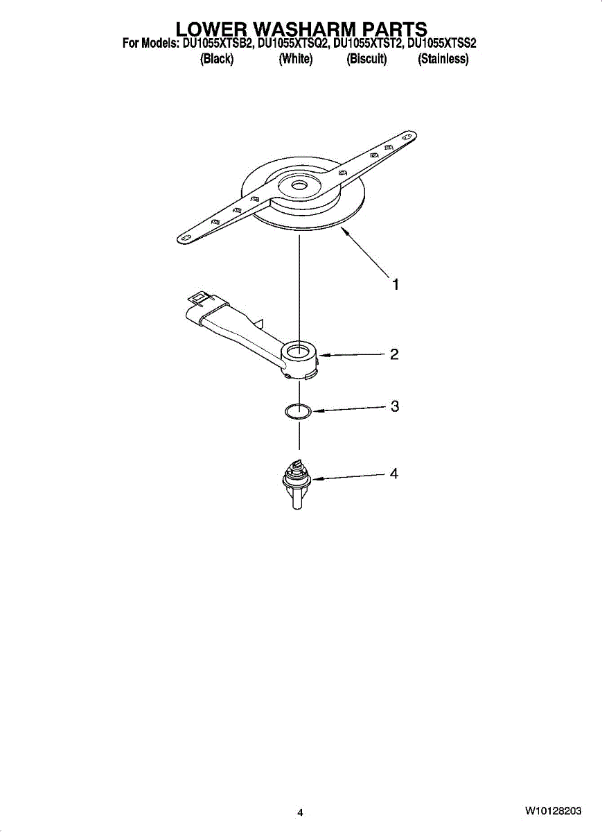 Parts for Whirlpool DU1055XTSQ2: 04 - Lower Washarm Parts