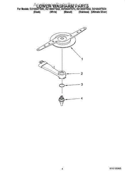 Parts for Whirlpool DU1055XTSQ3: 04 - Lower Washarm Parts