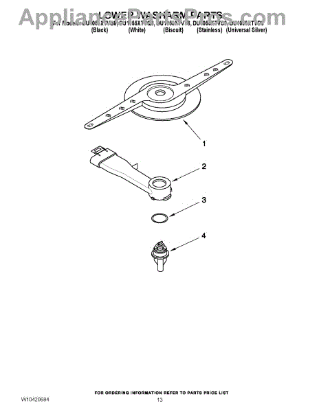 Parts for Whirlpool DU1055XTVD8: 11 - Lower Washarm Parts