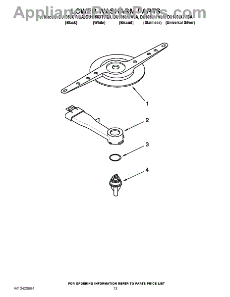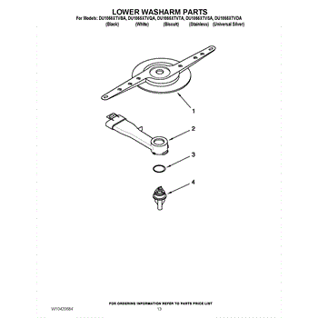 Parts for Whirlpool DU1055XTVTA: 11 - Lower Washarm Parts