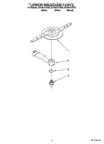 Parts for Whirlpool DU1061XTSQ0: 04 - Lower Washarm Parts