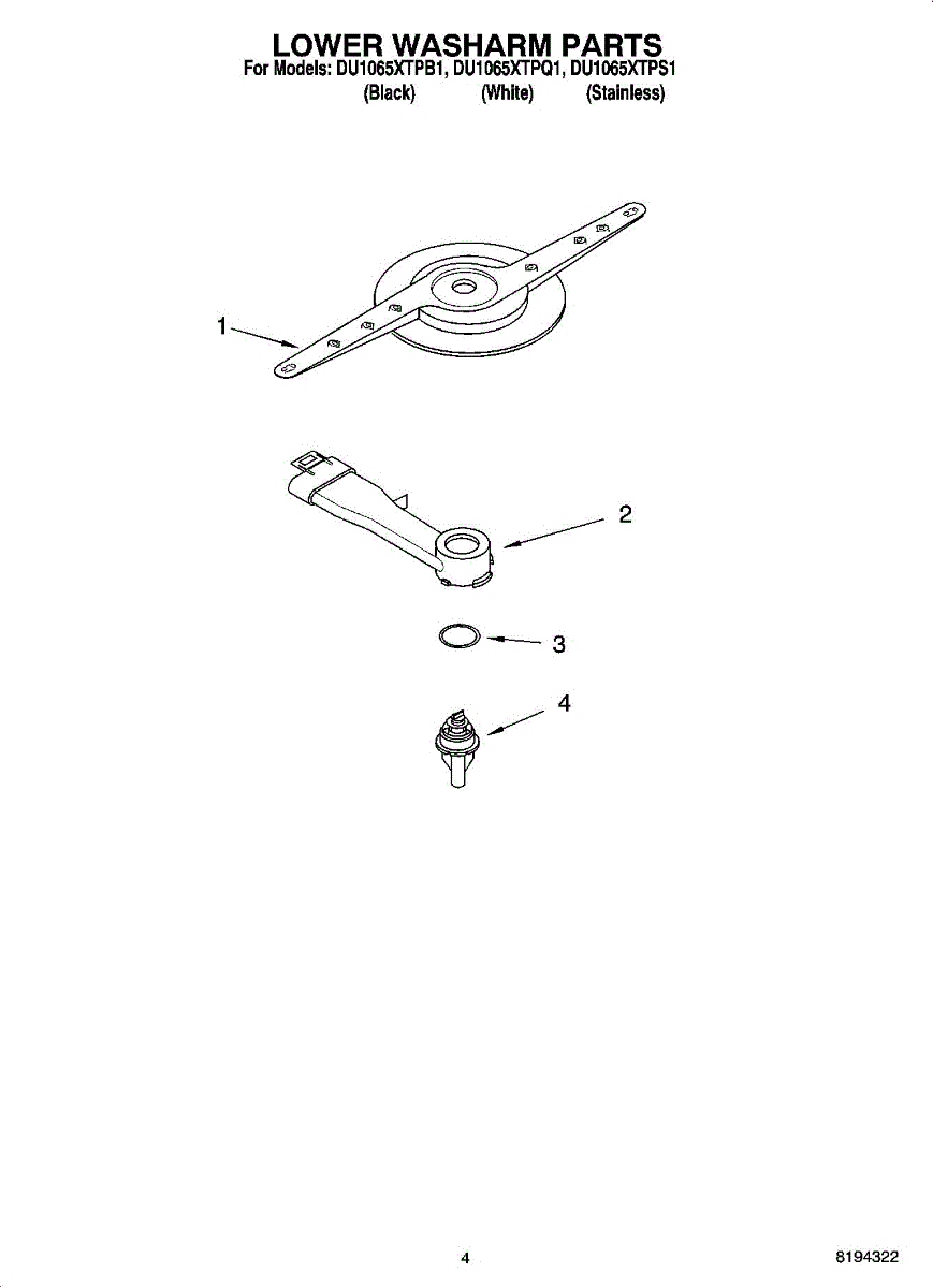 Parts for Whirlpool DU1065XTPB1: 04 - Lower Washarm Parts