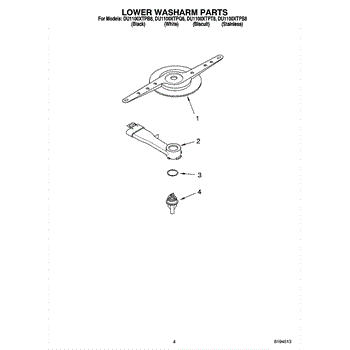 Parts for Whirlpool DU1100XTPQ8: 04 - Lower Washarm Parts