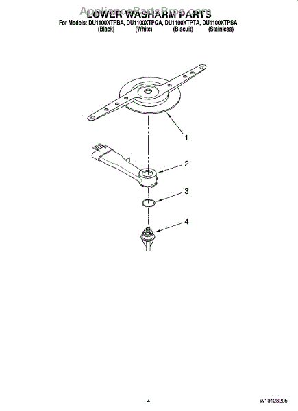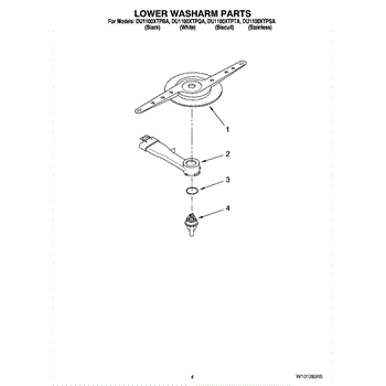 Parts for Whirlpool DU1100XTPSA: 04 - Lower Washarm Parts