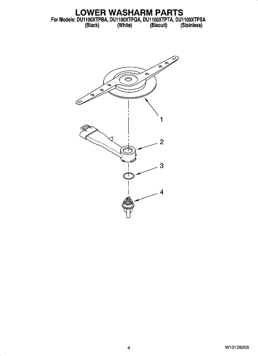 Parts for Whirlpool DU1100XTPTA: 04 - Lower Washarm Parts