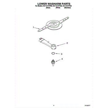 Parts for Whirlpool DU1101XTPB0: 04 - Lower Washarm Parts