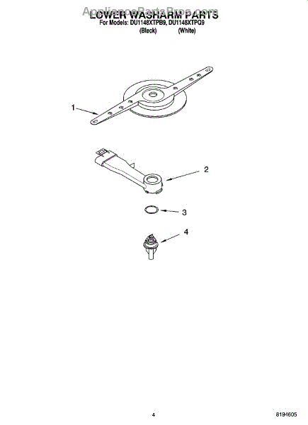 Parts for Whirlpool DU1148XTPQ9: 04 - Lower Washarm Parts