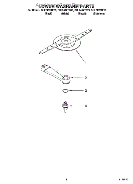 Parts for Whirlpool DUL240XTPQ9: 04 - Lower Washarm Parts