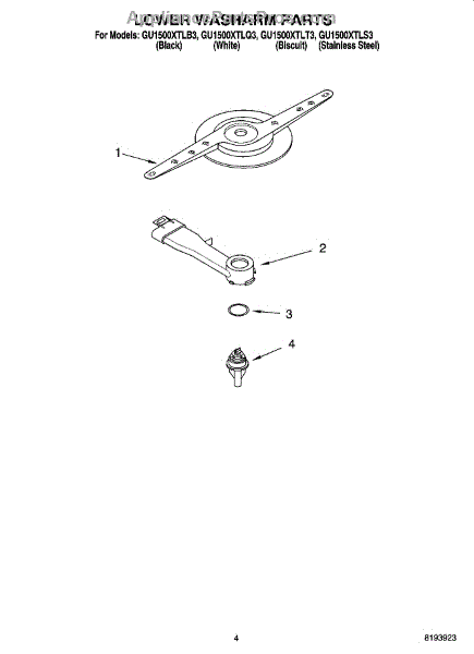 Parts for Whirlpool GU1500XTLS3: 04 - Lower Washarm Parts