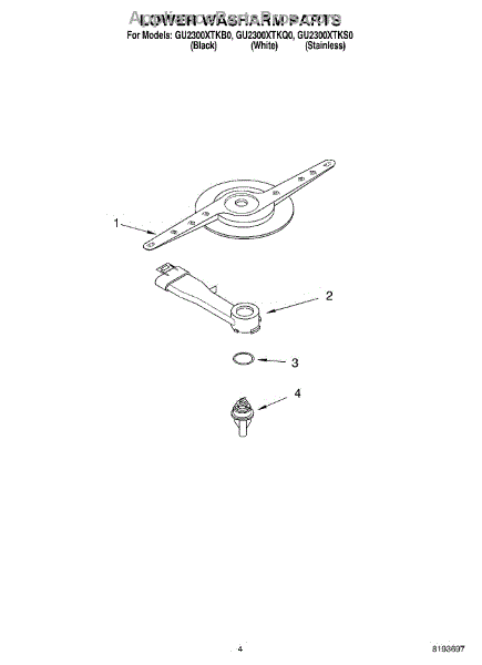 Parts for Whirlpool GU2300XTKQ0: 04 - Lower Washarm Parts