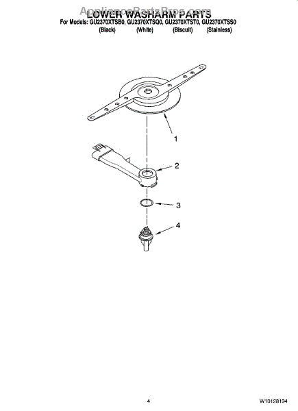 Parts for Whirlpool GU2370XTSS0: 04 - Lower Washarm Parts