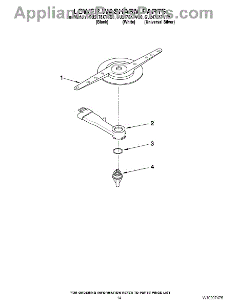 Parts for Whirlpool GU2475XTVQ0: 11 - Lower Washarm Parts