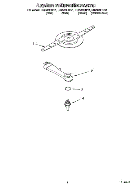 Parts for Whirlpool GU2500XTPB1: 04 - Lower Washarm Parts
