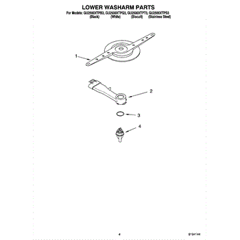 Parts for Whirlpool GU2500XTPQ3: 04 - Lower Washarm Parts