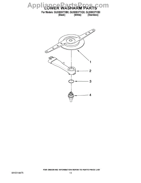Parts for Whirlpool GU3000XTXQ0: 11 - Lower Washarm Parts