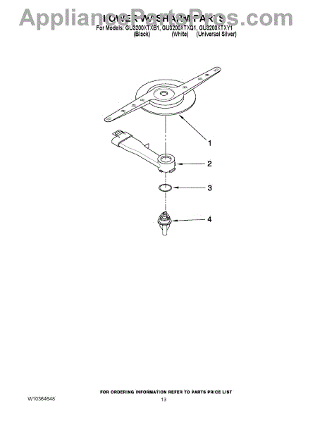 Parts for Whirlpool GU3200XTXB1: 11 - Lower Washarm Parts