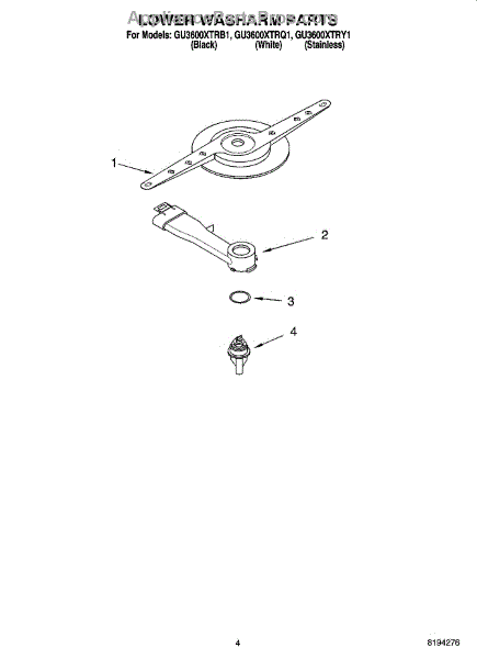 Parts for Whirlpool GU3600XTRB1: 04 - Lower Washarm Parts
