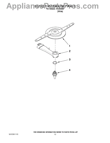 Parts for Whirlpool IWU98663: 11 - Lower Washarm Parts