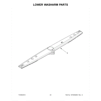 The Lower Spray Arm is an OEM part for Whirlpool dishwashers. This component is essential for distributing water throughout the dishwasher during the wash cycle. It rotates to spray water upwards, ensuring that dishes on the lower rack are thoroughly cleaned. The spray arm measures about 20 inches wide.