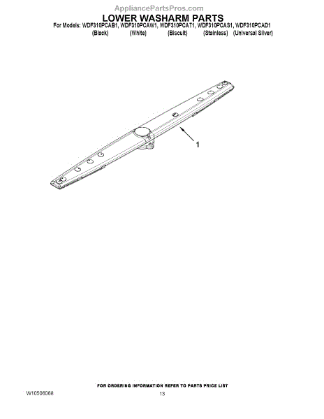 Parts for Whirlpool WDF310PCAT1: 11 - Lower Washarm Parts