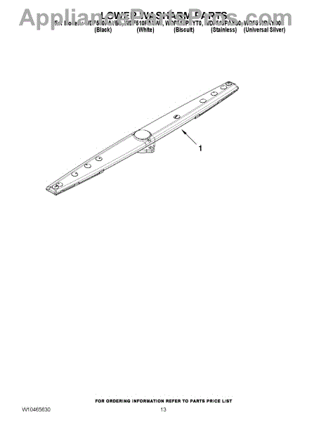 Parts for Whirlpool WDF510PAYD0: 11 - Lower Washarm Parts