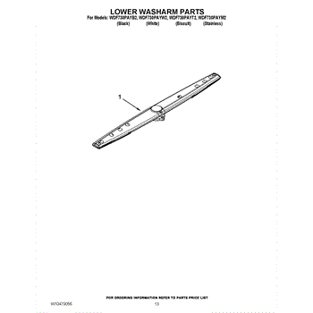The Lower Spray Arm is an OEM part for Whirlpool dishwashers. This component is essential for distributing water throughout the dishwasher during the wash cycle. It rotates to spray water upwards, ensuring that dishes on the lower rack are thoroughly cleaned. The spray arm measures about 20 inches wide.
