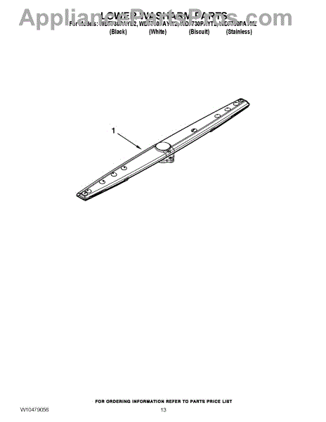 The Lower Spray Arm is an OEM part for Whirlpool dishwashers. This component is essential for distributing water throughout the dishwasher during the wash cycle. It rotates to spray water upwards, ensuring that dishes on the lower rack are thoroughly cleaned. The spray arm measures about 20 inches wide.
