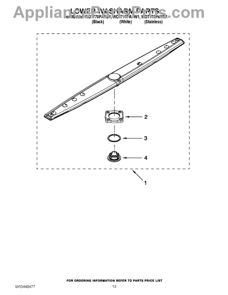 Parts for Whirlpool WDT770PAYB1: 11 - Lower Washarm Parts