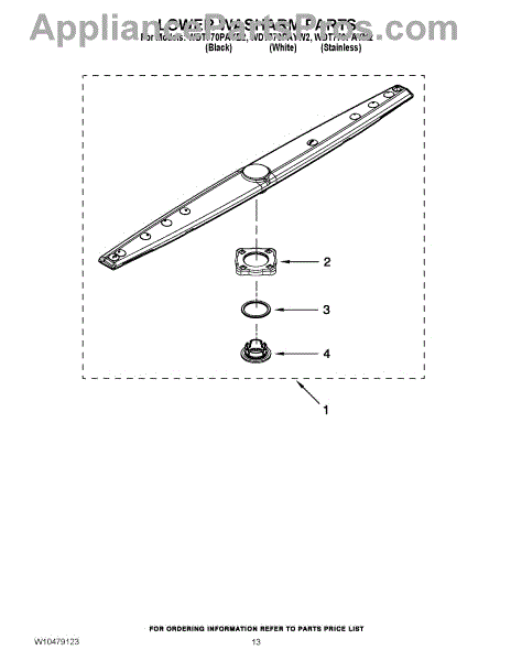 Parts for Whirlpool WDT770PAYB2: 11 - Lower Washarm Parts