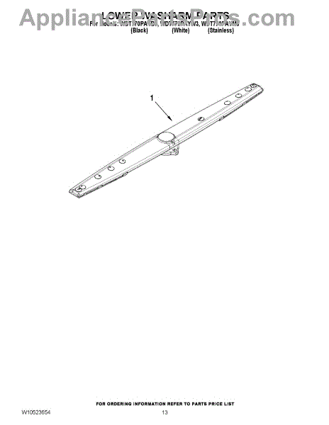 Parts for Whirlpool WDT770PAYW3: 11 - Lower Washarm Parts